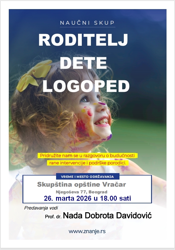26. mart u 18.00 sati u sali zgrade Opštine Vračar, Njegoševa 77, na kome će se zainteresovani roditelji, ali i mladi logopedi zainteresovani za ovaj problem, upoznati sa planom i programom kursa i prijavljivati za naredna predavanja.